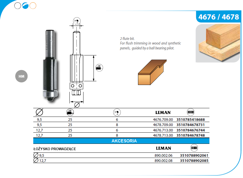 Frez trzpieniowy widiowy do drewna 9,5x25 trzpień 6mm - Frez posiada ostrza HM. Do wyrównywania powierzchni i obcinania laminatu. Frez przeznaczony do obróbki drewna i tworzyw drewnopochodnych na frezarkach ręcznych. Frez wyposażony jest w łożysko prowadzące, które umożliwia pracę z wykorzystaniem szablonu.