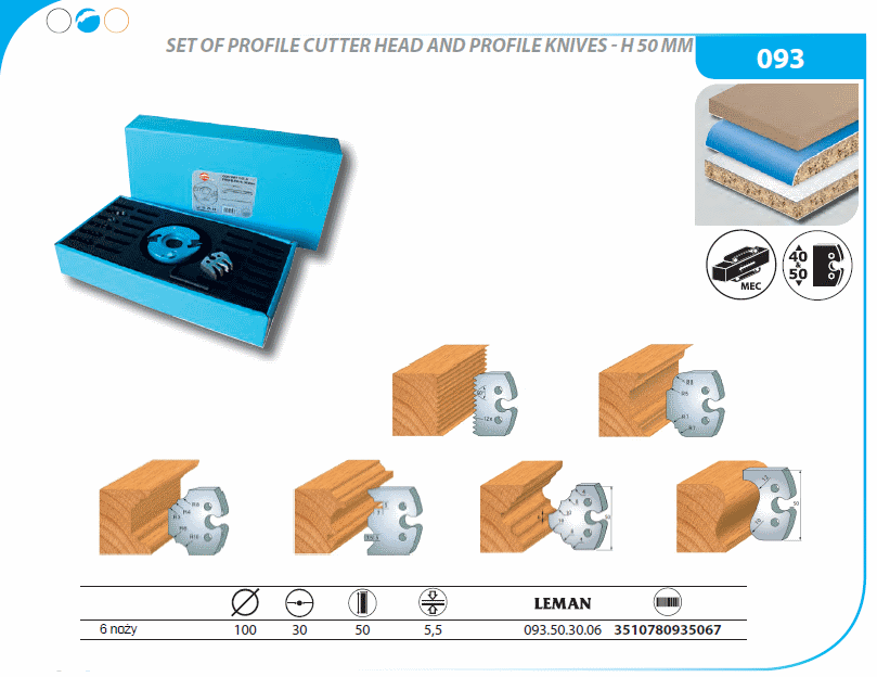 Głowica frezarska do obróbki drewna, najlepsze rezultaty - płyta wiórowa, MDF, materiały drewnopochodne, plastik i laminaty. W zestawie: 6 noży wymiennych 50x12x1,5mm, 2 płytki wymienne 14x14x2mm i klucz Torx.