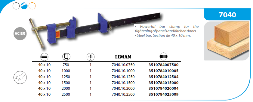 Ścisk stolarski 750mm / 40x10mm